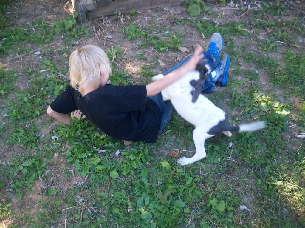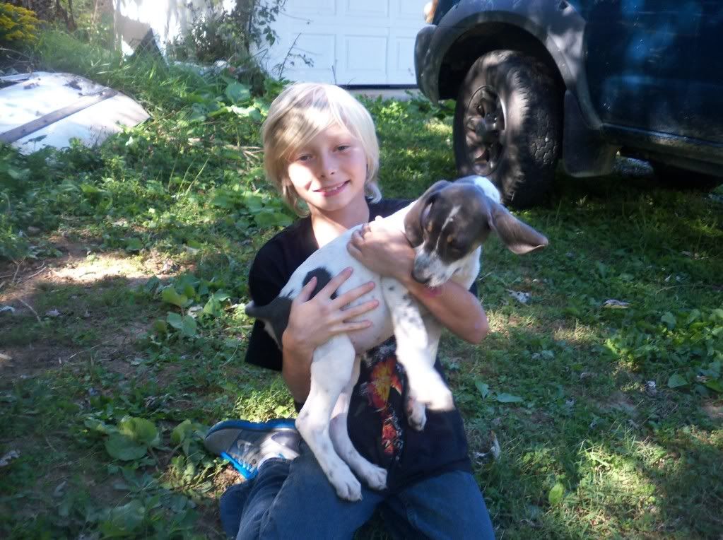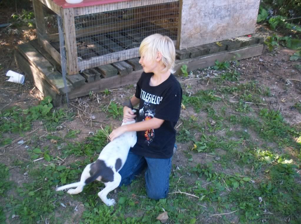 Bailey is crazy over this pup...he has took to him alot like he did Rex...i hope this gets him wanting to go hunting with me more....he said this morning he couldnt wait to take Ace hunting....he is actuly outside with him now...he may be playing with him to much...i think there throwing a football to each other ....lol...