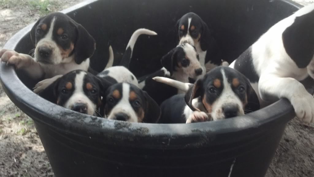 Toby X Sadie male pup 5 months old, every one that have these pups are saying they are really smart , and learn very fast some ofthe older ones are running and treeing.