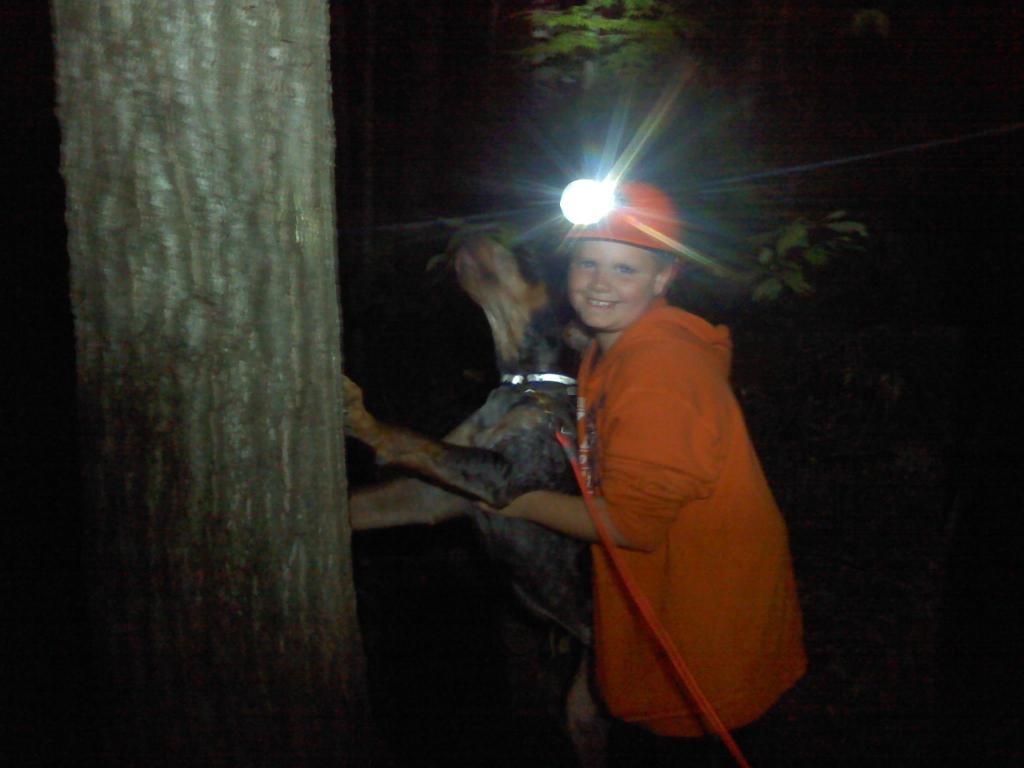 Congrats to Caleb and Rob for doing such a great job with Radar got this pic last night and it said deep and alone with the meat the boys smile says it all!!! Just got another call from Rob as I type this Radar is treed with yet another coon in the day light got loose went got treed been treed since 7am with the meat GREAT JOB with this young dog guys keep up the good work!!!