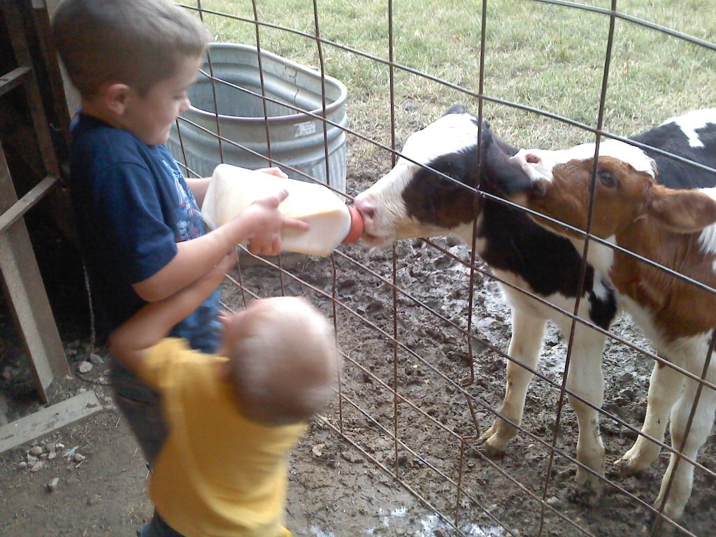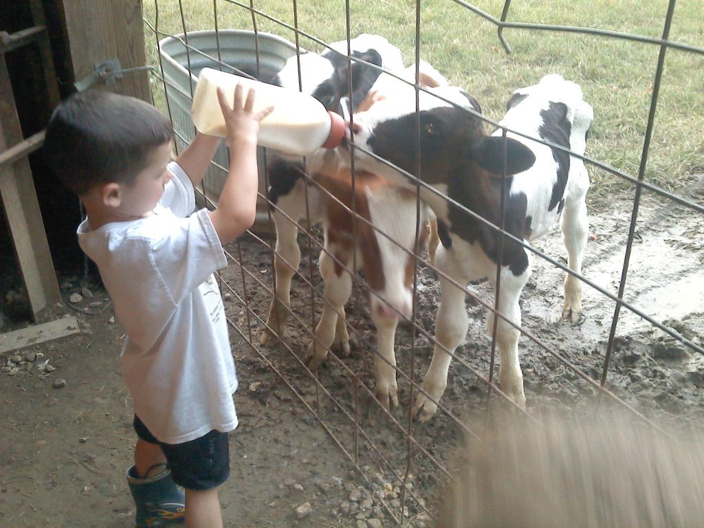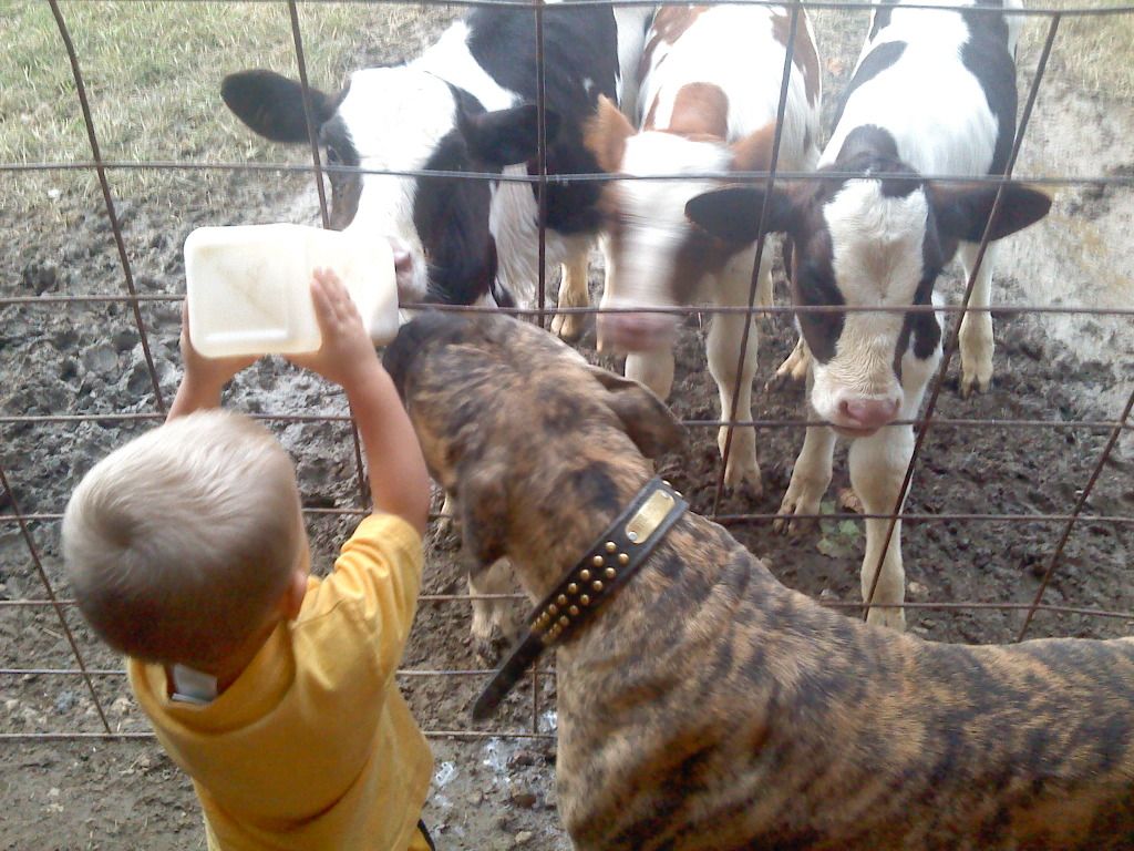She gets all the clean up drool's of milk then she licks the calf's face's clean..Real mean dog