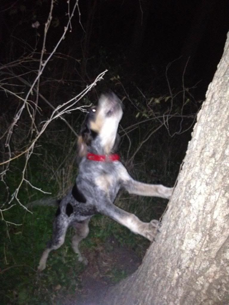 He's been getting treed on his own on squirrels around the farm for a couple weeks now.