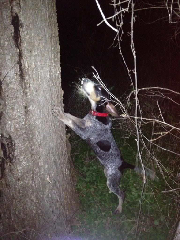 Matt had just knocked two out to him and the old dog and was letting him run on his own walking out to the truck,he opened up on track and fell treed on his own.