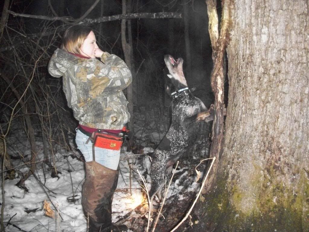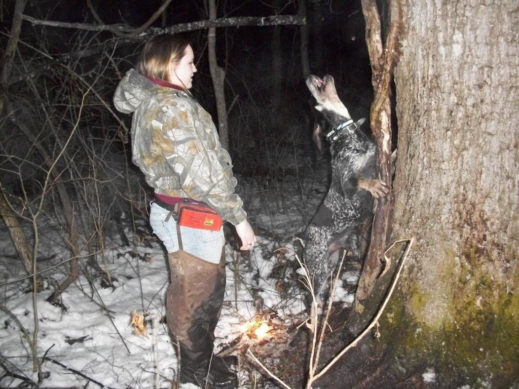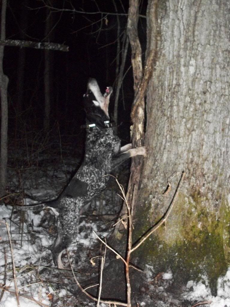 I had a great hunt last night with Jr the coon made a nice run through the swamp before Jr locked down on tree and blew the top out.