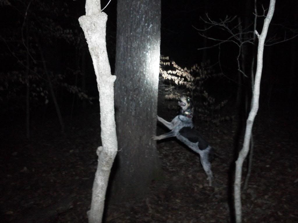 Had a grat hunt night before last with Goose and Chris that little rip is a coon treeing machine!!! 6 tree's 5 coon on the outside..