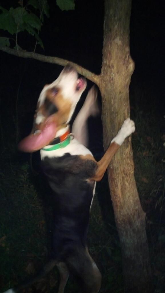8 month old Drifter pup treed.