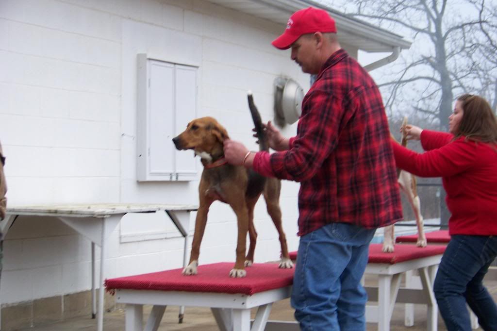 Mike Shannon luck!!! Cookie is in heat... Winter storm warning so we cancelled going to Bourbon and went to Higbee, Mo. instead. Won Walker puppy class with Blackjack.