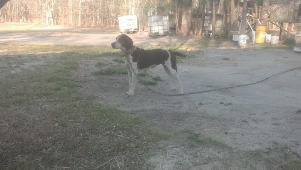 molly is chop and ball on track, good locateand chop mouth tree dog, independant female, will split and hold pressure, she split the other nite 2 times with coons in her trees for the win. tons of energy, hunts good alone or with company, she's 22 months old will be 2 in june, she can look good and bad at times, but she's still young