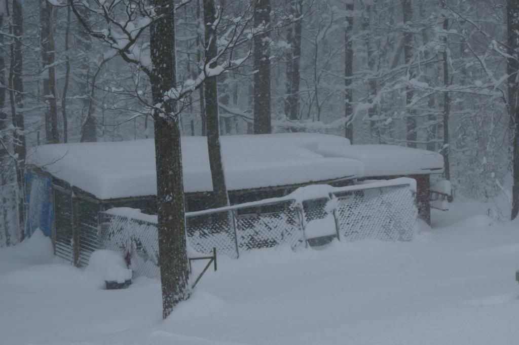 Looks like we got over 2 feet here. Man this is very depressing to say the least! I have 5 pups out in my big puppy run. Looks like I'll have to round them up and put them in the kennel! Makes a man want to cry!!