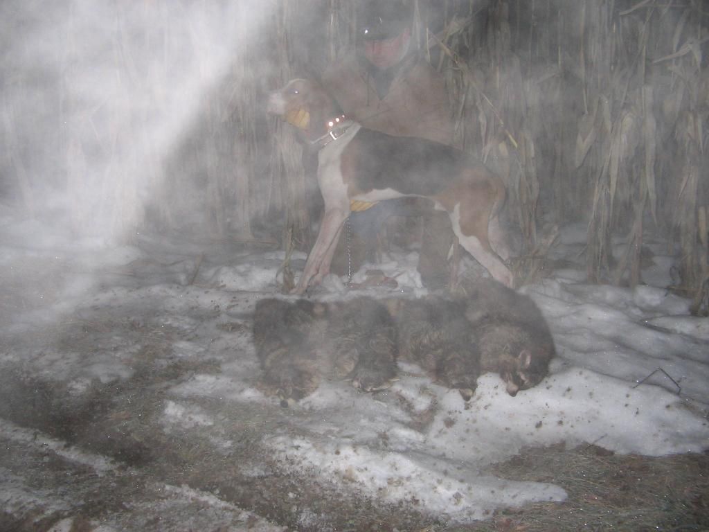 here is 2 young dogs that was hunted by there self's 5 to 7 nights a week in 0 to 16 degree weather never brought a off bark on anything, but both could trail up and tree coon and have the meat when they set down