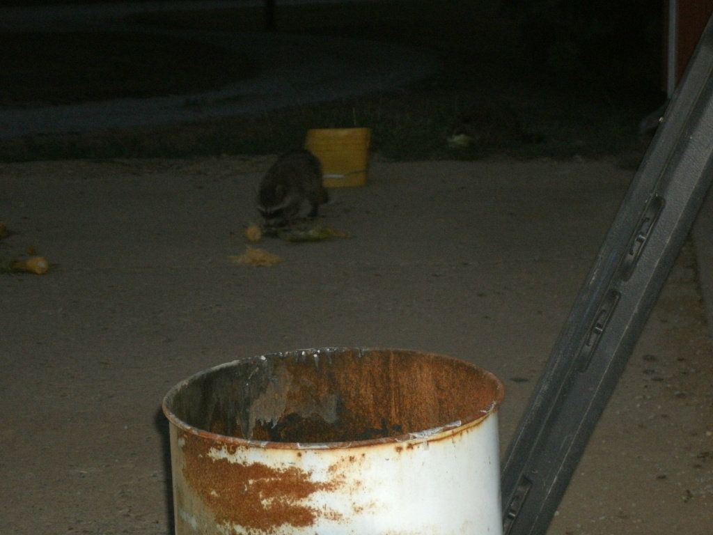 i stayed out till dark the two kit coons came up to clean up tonights sweetcorn cobs.......