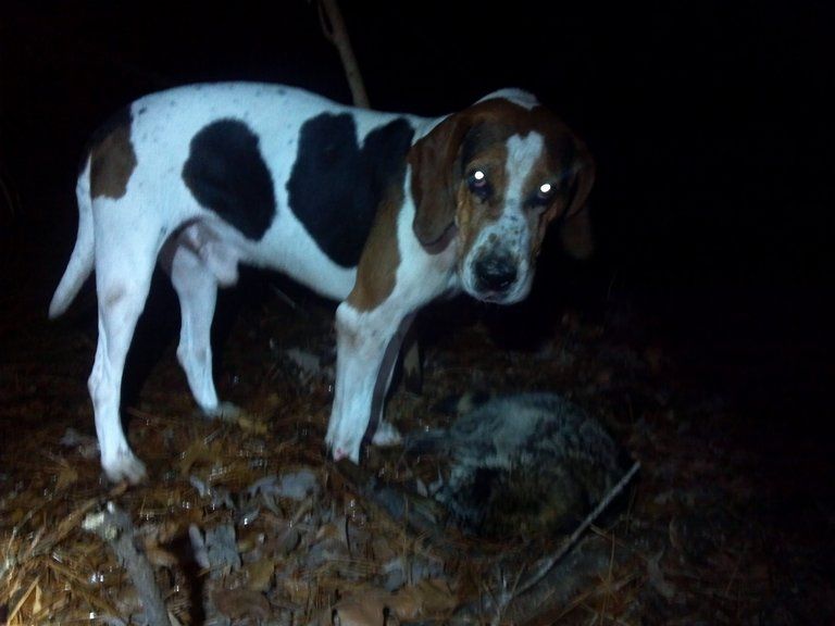 Turned DRIFTER loose last night by himself, he got treed 947 yrds with the meat.