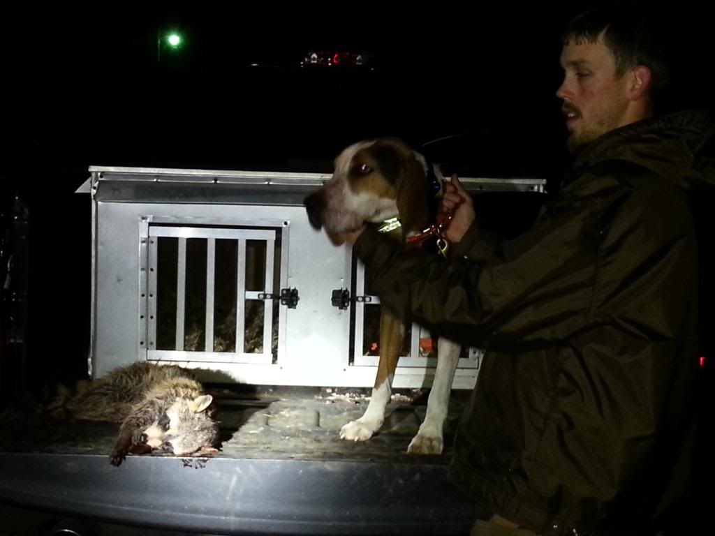 Thanks Courtney for taking me with Drifter the other night. This dog still has a very good mouth and can drift a track and put an end to it in style. Very nice dog.