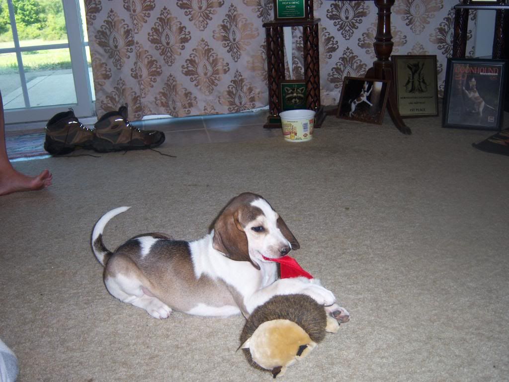 Larry. I hope prissy is breed. Thanks for takin that picture for me and Im going to run a add in the october issue about that cross and the one on mouse. That would be something if she comes in heat and gun breeds 3 gold ch and one wld champion in one year. He being off a outstanding cross and the quality of females that are being backed up to him looks for a promising future for the breed. I am excited for you and the english breed. I may even keep one for myself off prissy or mouse. I saw prissy dropped 2 times and did not take long to make a believer out of me that she was what everyone was looking for and that is a hound that is a absolute pleasure to hunt that will give you a chance against anything. When bud wanted her in all he had to do was call her. Just joulous hunters did not like her.lol Thanks for your help.