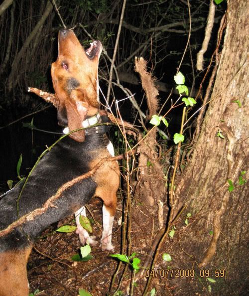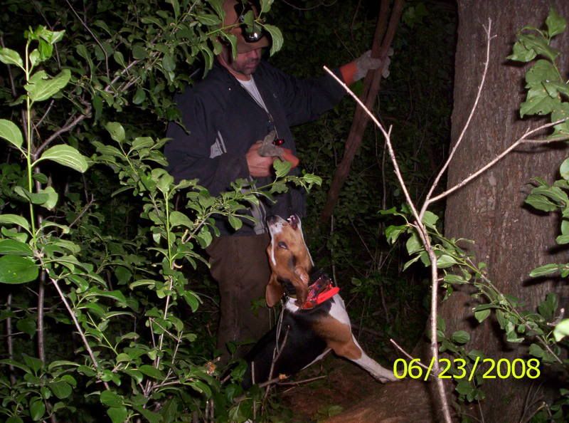 Here are a couple pictures of the pups.. 8 months old now and running and treeing bobs with their momma and daddy