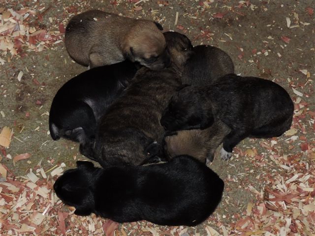 Annie's pups one day old. Yes Pastor Mike I have two very nice feist squirrel dogs. Annie's pups are now one week old with tails cut. 3 Males and 3 females. I hope you have good luck with your female. Your Friend, Dave