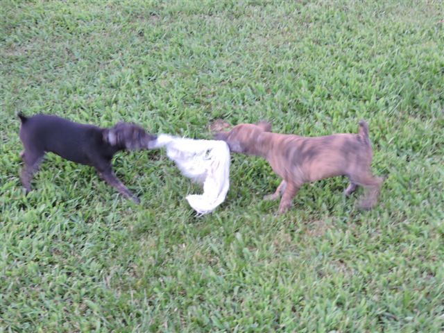 A couple of Brownie/Annie pups having a little tug of war. Pups are real smart. Dave