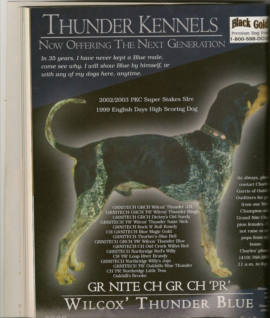 Thunder Kennels 45 Years Strong Home Of Gr Nt Ch PR Wilcox' Thunder Tae Bo, Gr Nt Ch , Gr Ch PR Wilcox' Thunder Blue, Gr Nt Ch PR Wilcox' Thunder All Grand Dan, 2011 U.K.C Wld Nite Ch Gr Nt Ch PR Wilcox' Thunder Top Gun, Gr Nt Ch PR Wilcox' Big Thunder Ka-Boom Former Home of Gr Nt Ch, Gr Ch PR Wilcox' Thunder J.R., Gr Nt Ch ,Gr Ch PR Wilcox' Thunder Bingo, Gr Nt Ch PR Wilcox' Thunder St Nick
