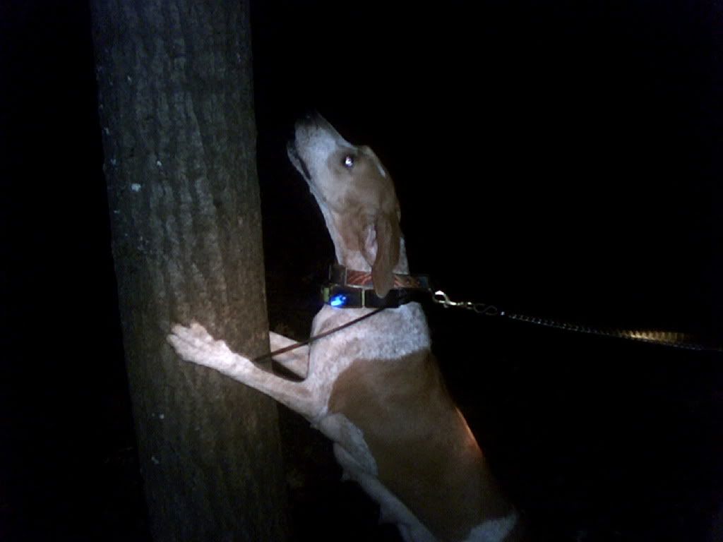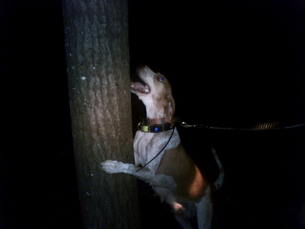 Jasmine did alright last night we treed 7 and was home by 1:30...it got cold cold last night 31 degrees..winter must be getting close...