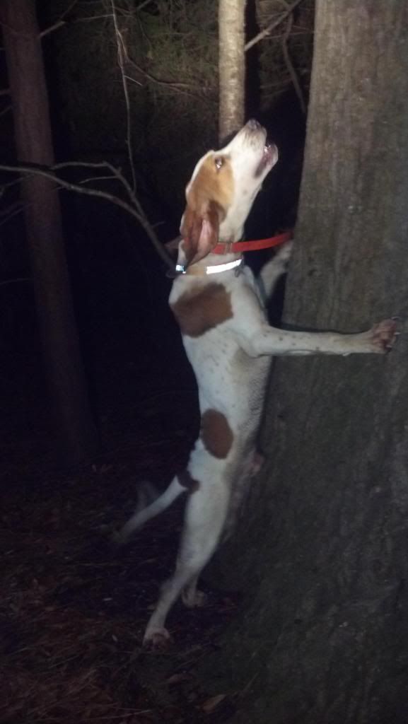 Larry had ol Nails a treeing tonight he also ran alittle track!!!