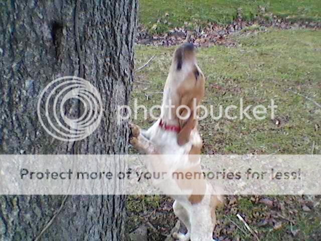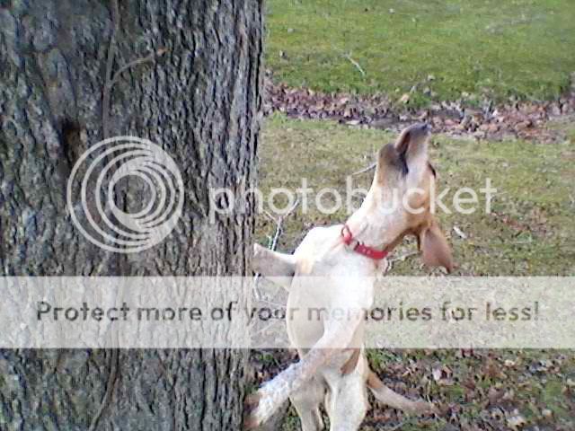 RUBY x TOP GUN treed on a squirrel in 2 days she will be 5 months old, she will go every step and be on every tree day or night. Hard tree dog!!!!!!!!