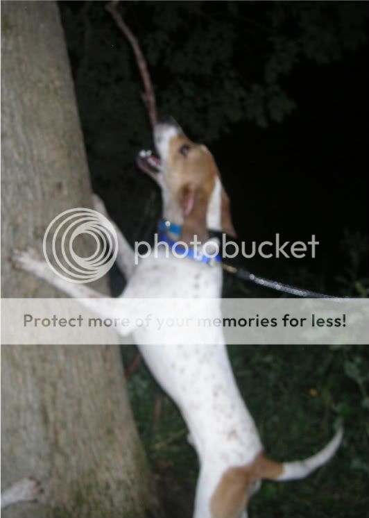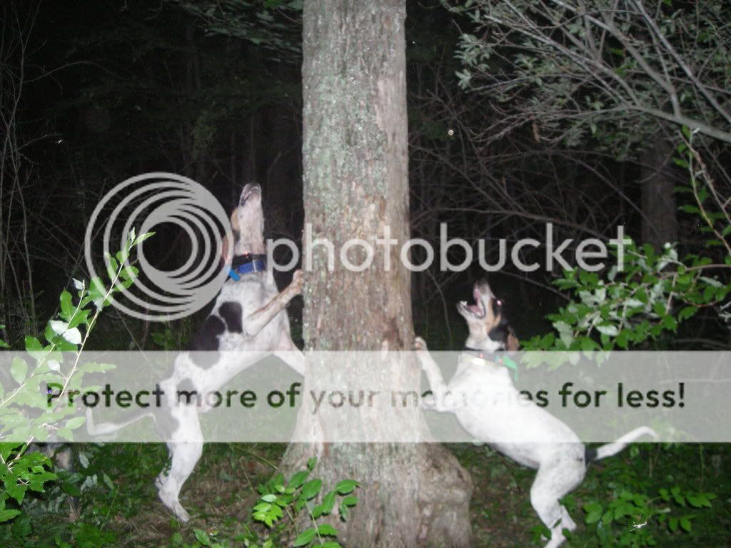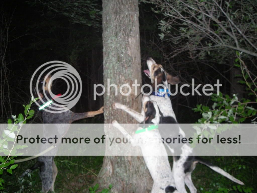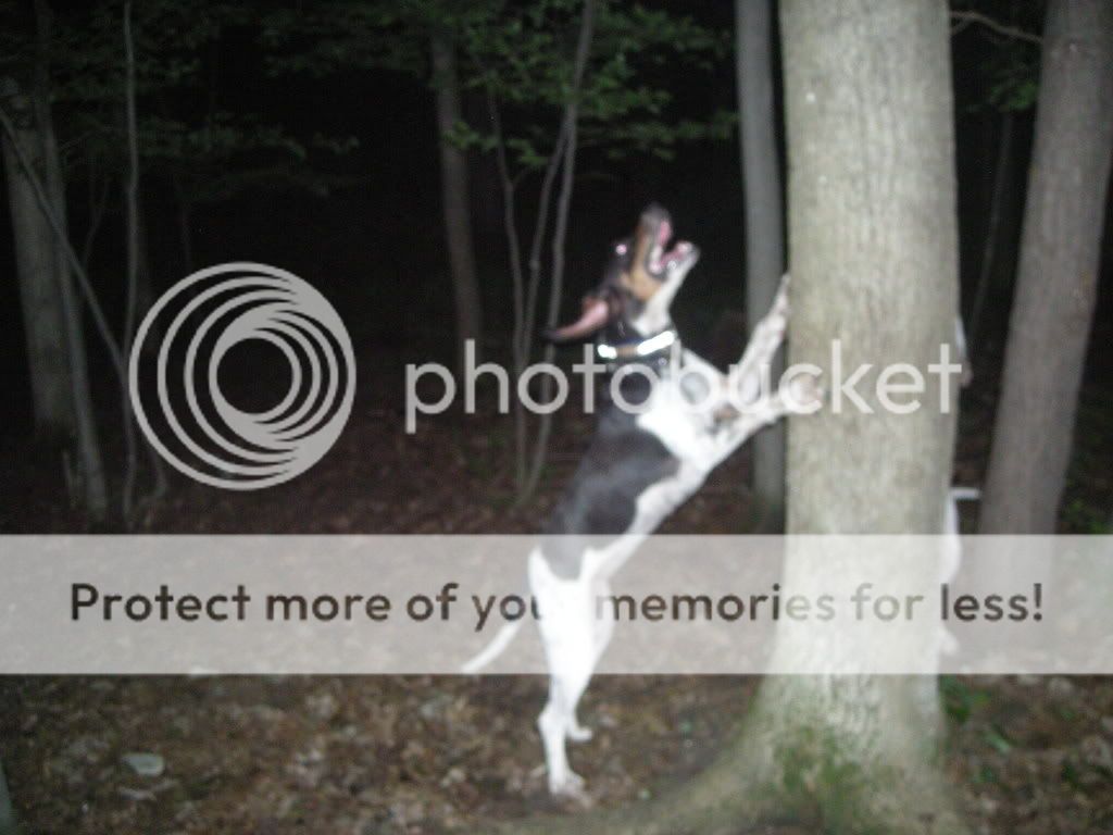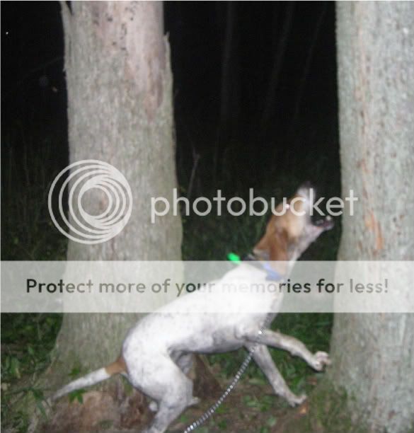 i have finaly started hunting Fly,i have had her out 3 times last nite comming out of the woods she was checking trees and just grabbed a tree and started treeing.She went about 10 feet out and came back & started again.i tried to get a pic but she got down about the time i snapped it.i shined but couldnt find anything but it was a huge ash tree.this has got me excited about hunting her .so from now on she won't be left at home.i will take her every time i go.when she trees she has a loud clear ringing chop kind of like a house dog .i think her voice is going to travel real good.i would like to breed my Kat female to Jack when she comes in.Kat is a littermte to Taylors Rasputin.