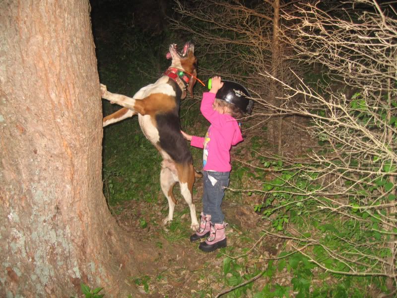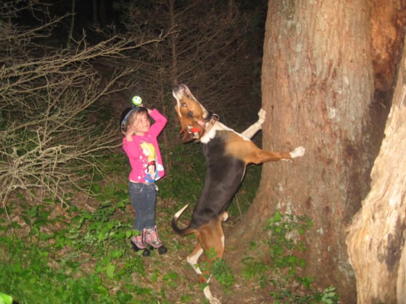 Took Trinity and Hangover last night...man what a blast!!! He treed on a den told her a den was a coons home. She said the coon closed the door and wouldn't let Hangover in....
