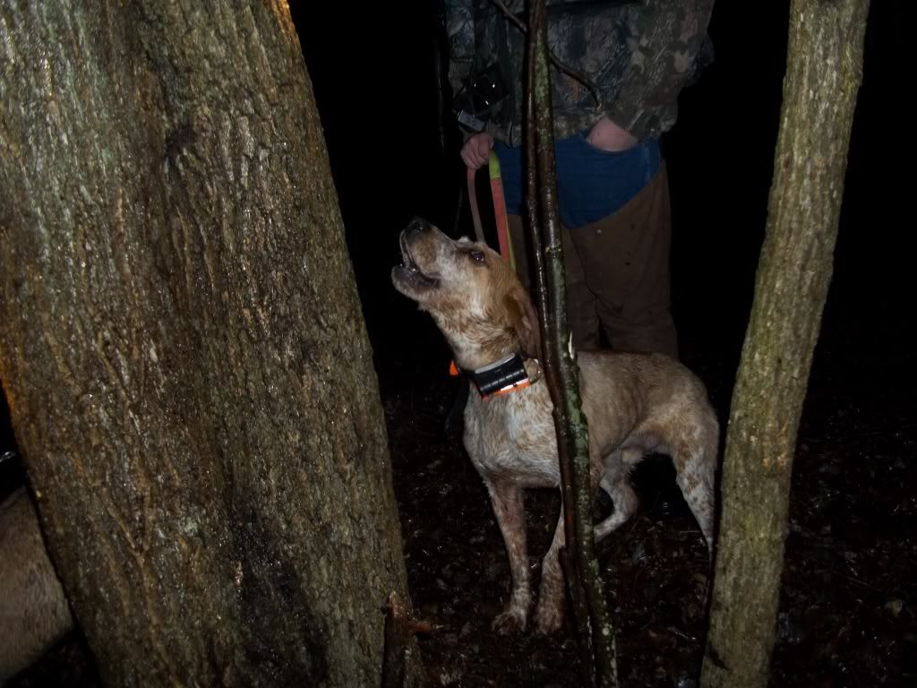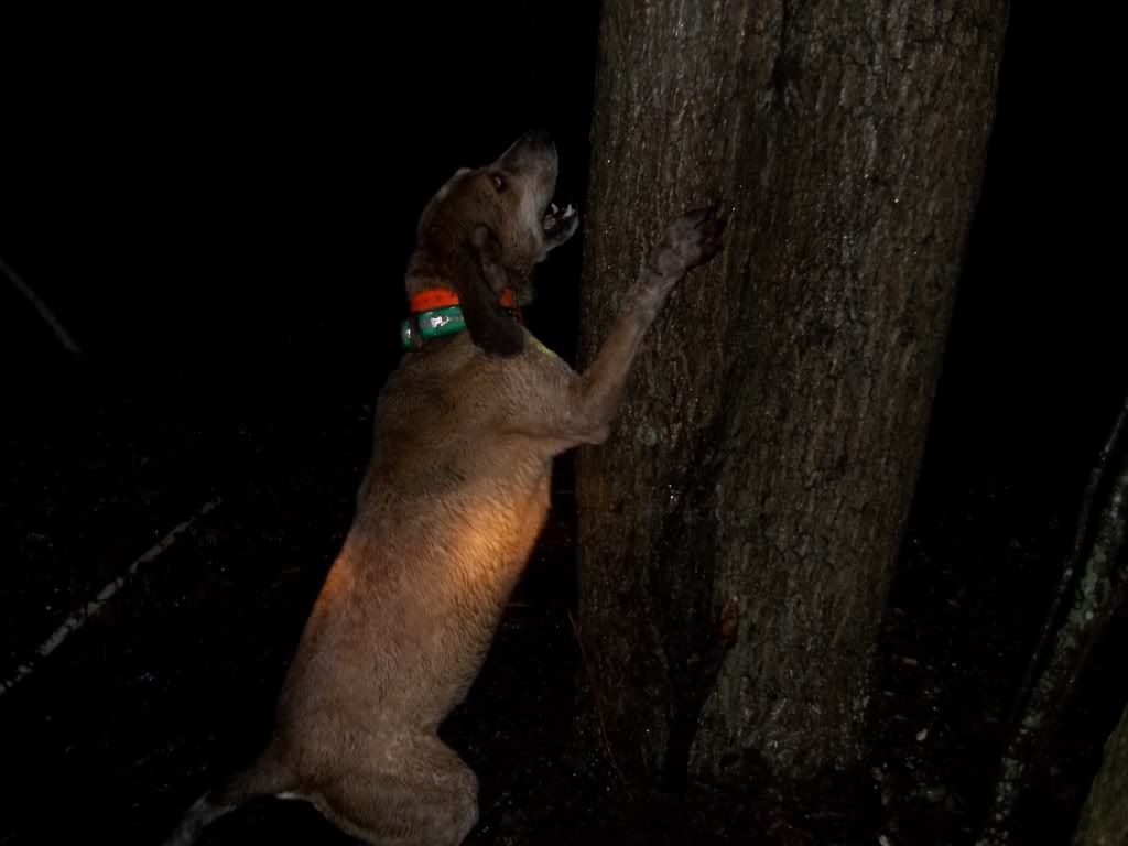 Took Joe out tonight he hasnt been out in a couple months...He did good treed 4 on the outside,1 den,1 slick....