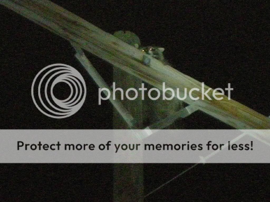 Here's a couple of pictures for the memory books! This is only the second time I have ever treed on a telephone pole. I'm glad the coon stayed off the wires, he might have been charcoal!!!!!