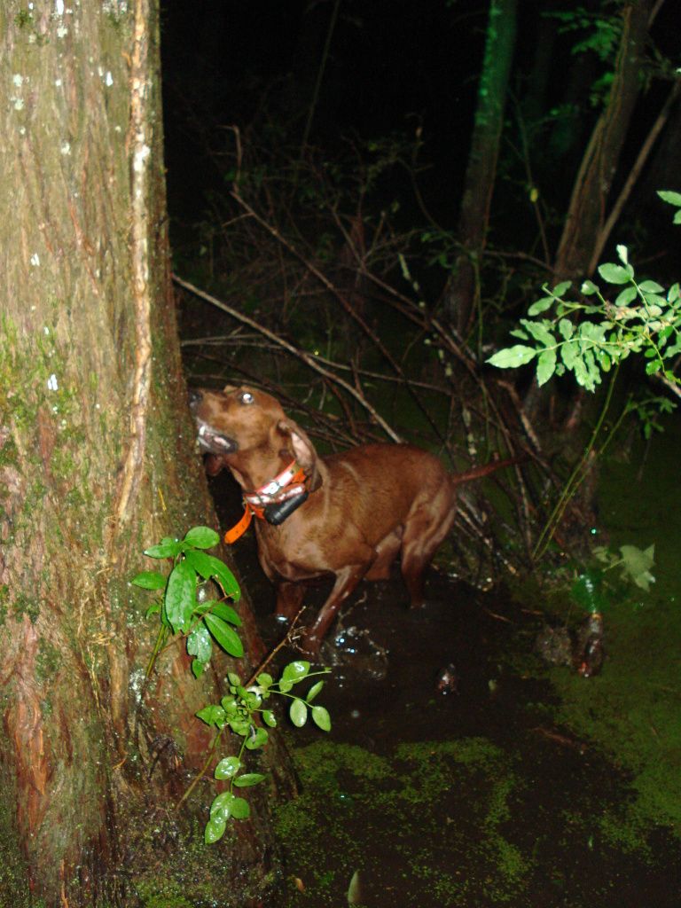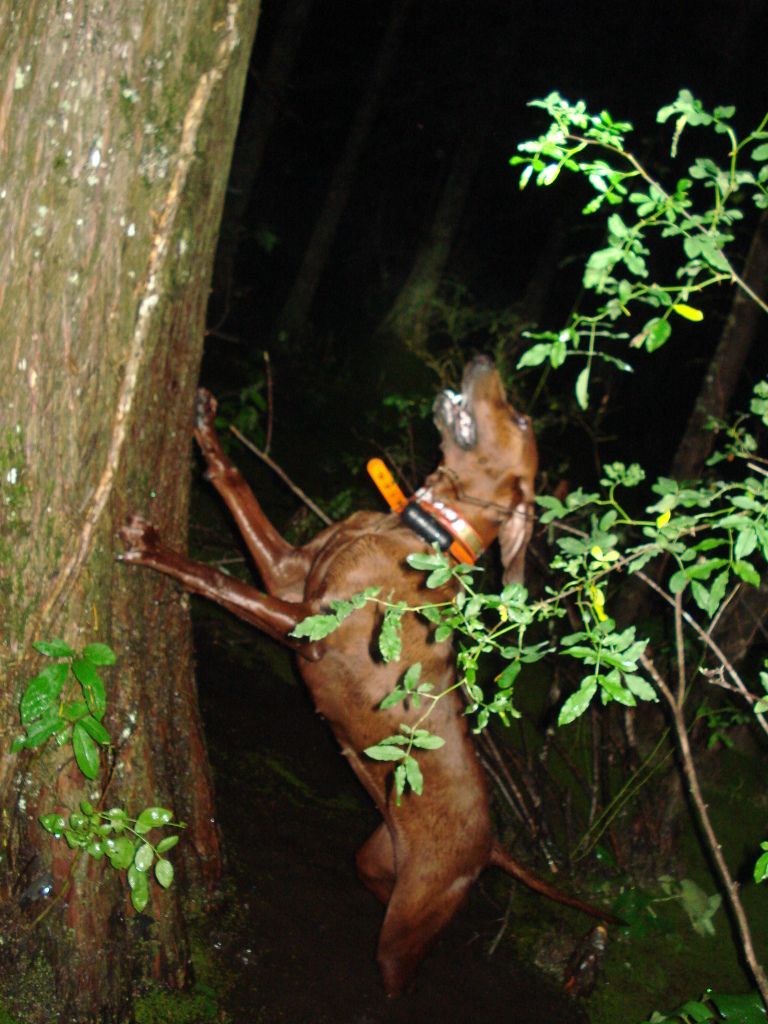 Went hunting last night. Autumn and Summer split treed. I wish that i could see up the trees this time of year. Summer did good and handled the water well not to bad for her 5th time out and only 6 months old.