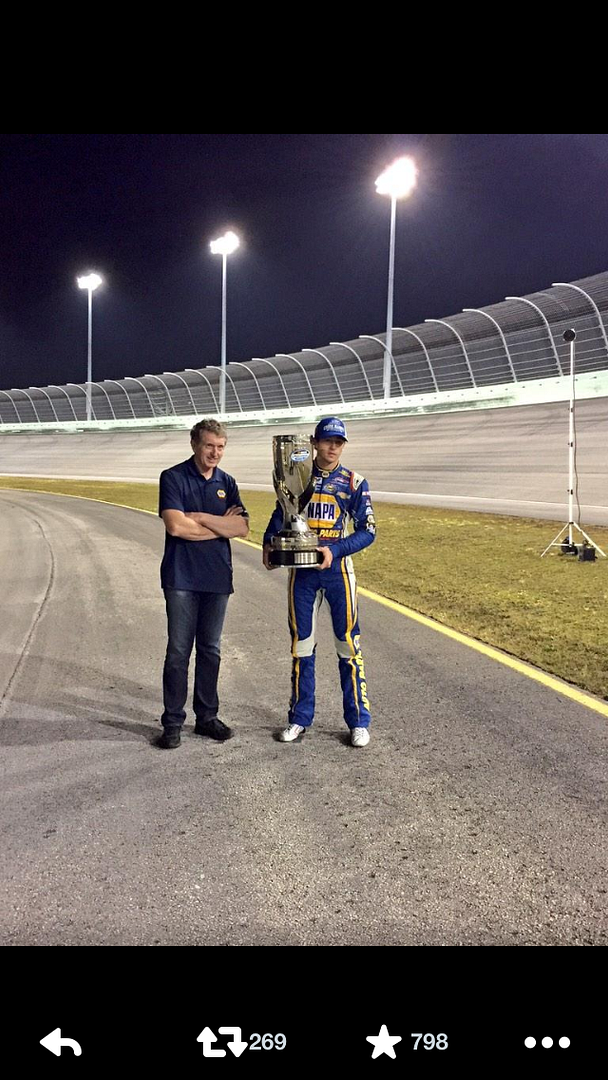 This past week Bill Elliot's son, Chase, locked up the Nation Wide Championship. He is the 2014 Champion no matter what happens at this weekends race. Chase is a rookie this year and Rick Hendrick said he would drive 1 more year in Nation Wide before coming to Sprint. He is a class act young man and will be the next Gordon or Johnson.