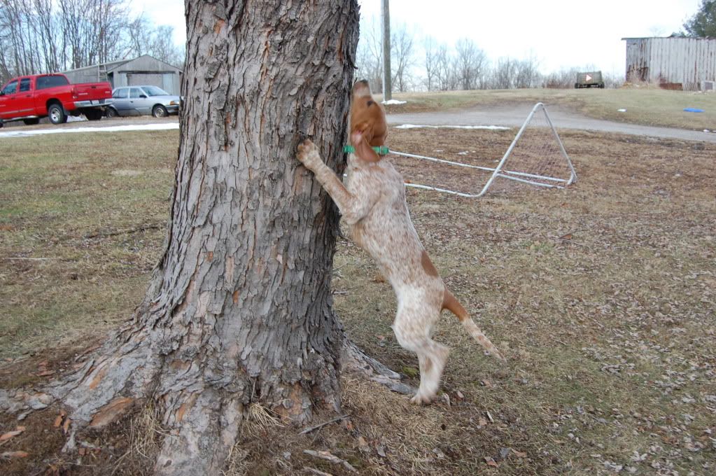 4 month old pup out of Jack and Dual Grand 'PR' Sunday Creek Allnight Izzie, on a coon hide