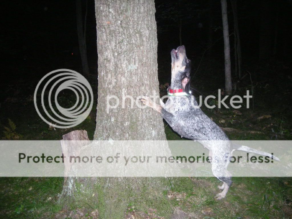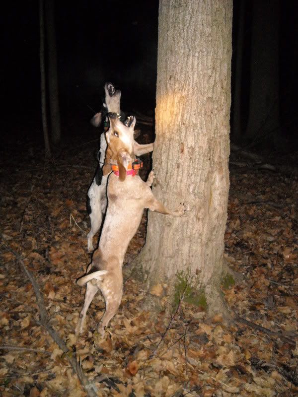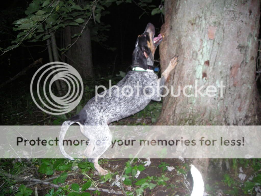 I have taken Bling (Jack X thunder Silk) out twice once at night and once during the day. She is a good acting pup nose always working. she is crossing creeks clibing woven wire fences. showed her a caged coon and she barked at it. made a short drag with a coon hide to see what she would do and she ended up getting down wind of the tree before she ever found the track and followed her nose in the air to the tree. and if she ends up treeing any thing like the way she barks at feeding time she will be a nice tree dog....