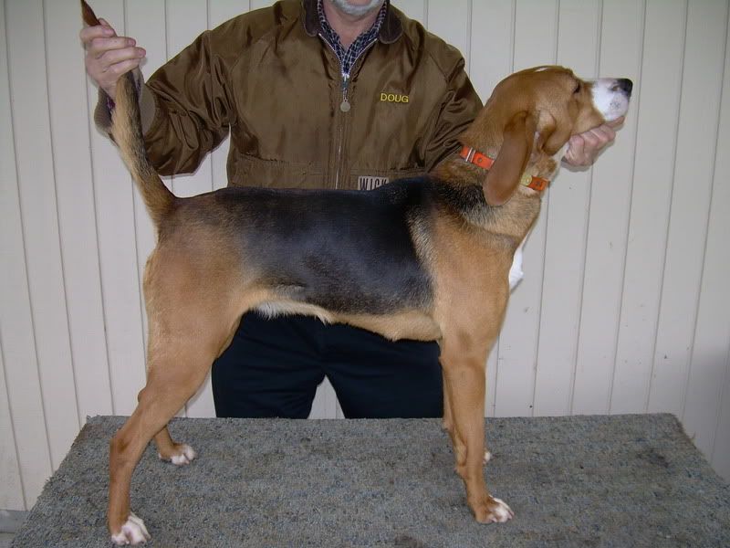 I had a male here at the house for 3 or 4 years that was a nice hound. The dog had a behavioral problem his owner couldn't control and he gave the dog to me without signing his papers. I was able to control the problem, and I ended up selling him to a young fella in Massachusetts as a grade dog.