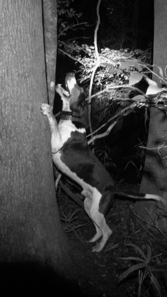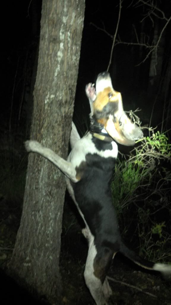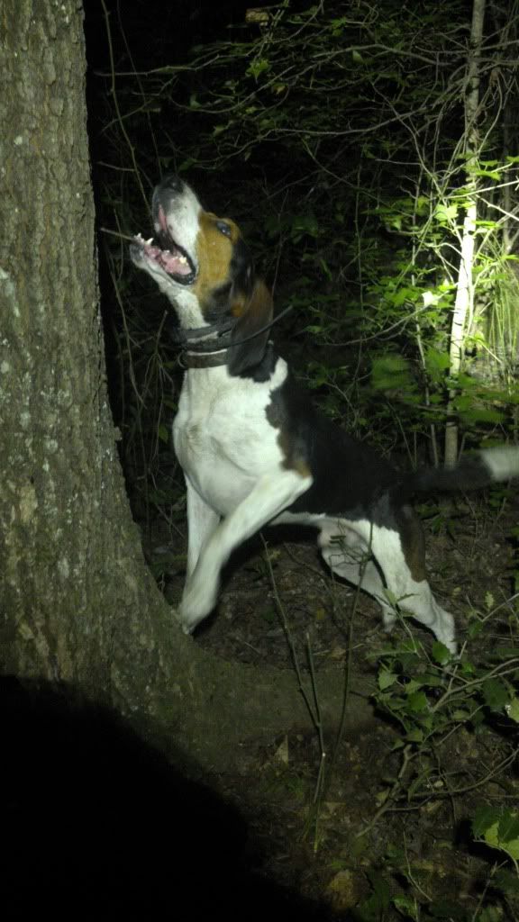 My Wipeout Clayton female is sure nuff doing a good job treein me some coons she split with a coon tonight held her tree 30 min plus, we went to another dog 350 yds and then had to drive to her and she had the meat she ran that coon through a cut over and treed him 700yds + away from the truck, she treed ahead of Toby last night and had a coon, I highly reccomend Clayton pups