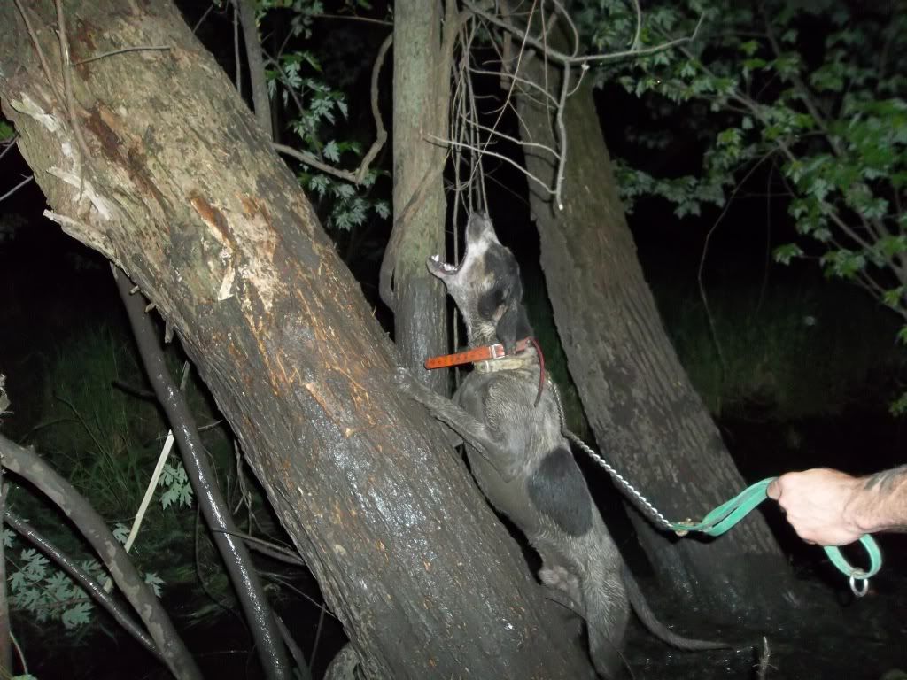 monkey bones getting it done 3rd night in the woods got by himself and held pressure on a den made 2 other trees with the old dog both had the meat
