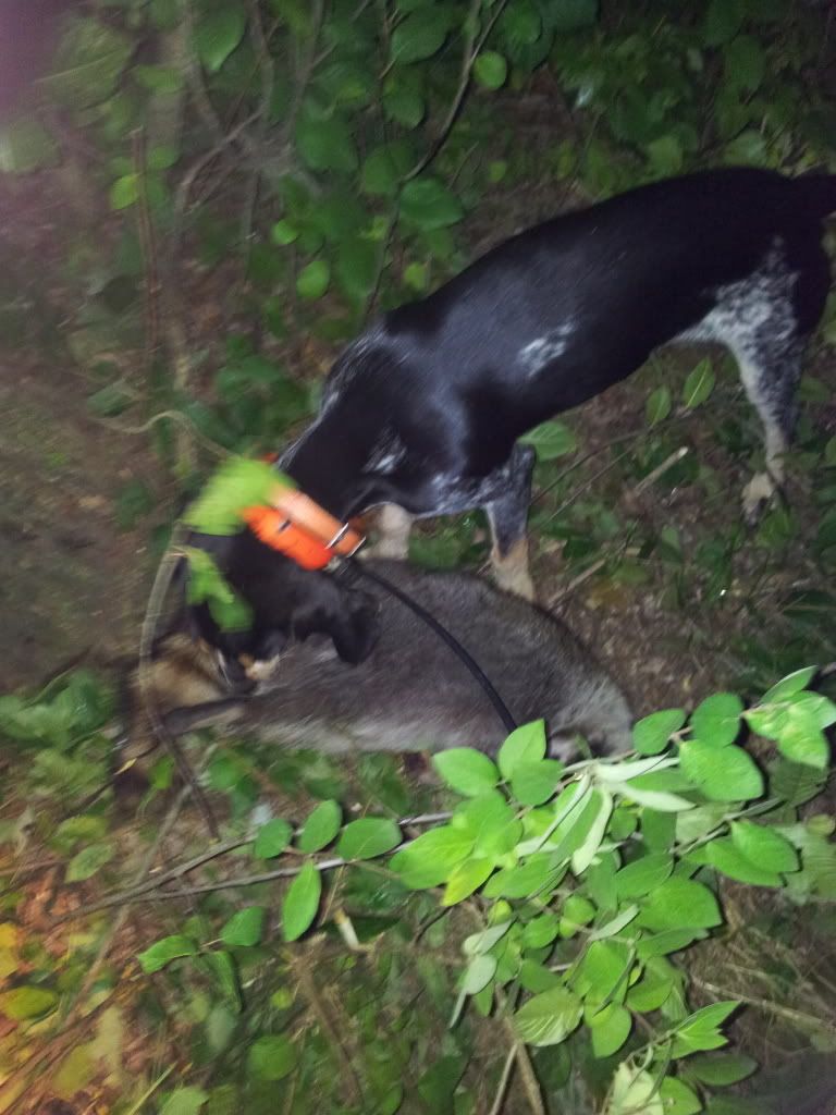 We had a great hunt with her last nite, she treed two by herself an we knocked both out to her, i figured she deserved them doing what she is at 5 month old. I will post pics of hunt later.