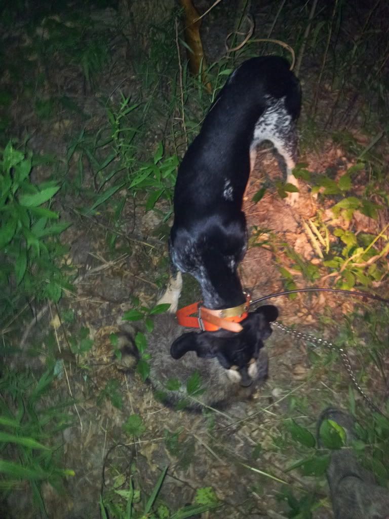 under the first tree she made that we found her coon!!! Very proud of her!!! J-Lee with the meat !