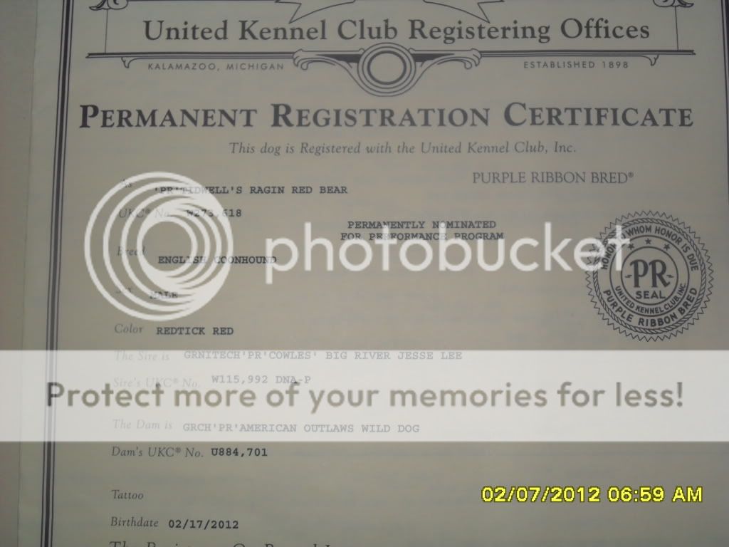 Thanks for the kind words, Coe, yours looks real similiar to mine, Took Reign out with 2 walker dogs last nite, 3 an 4 yr old dogs, she split from them with 2 coon in one tree and actually pulled them to her, I was impressed to say the least, she is coming along real good.