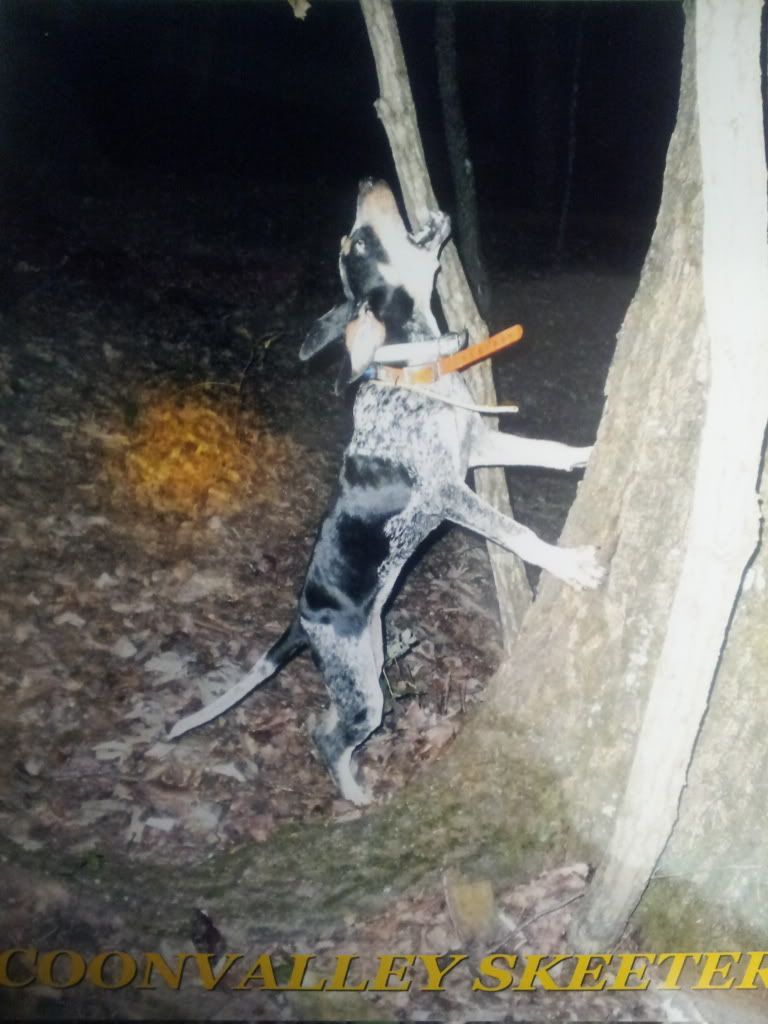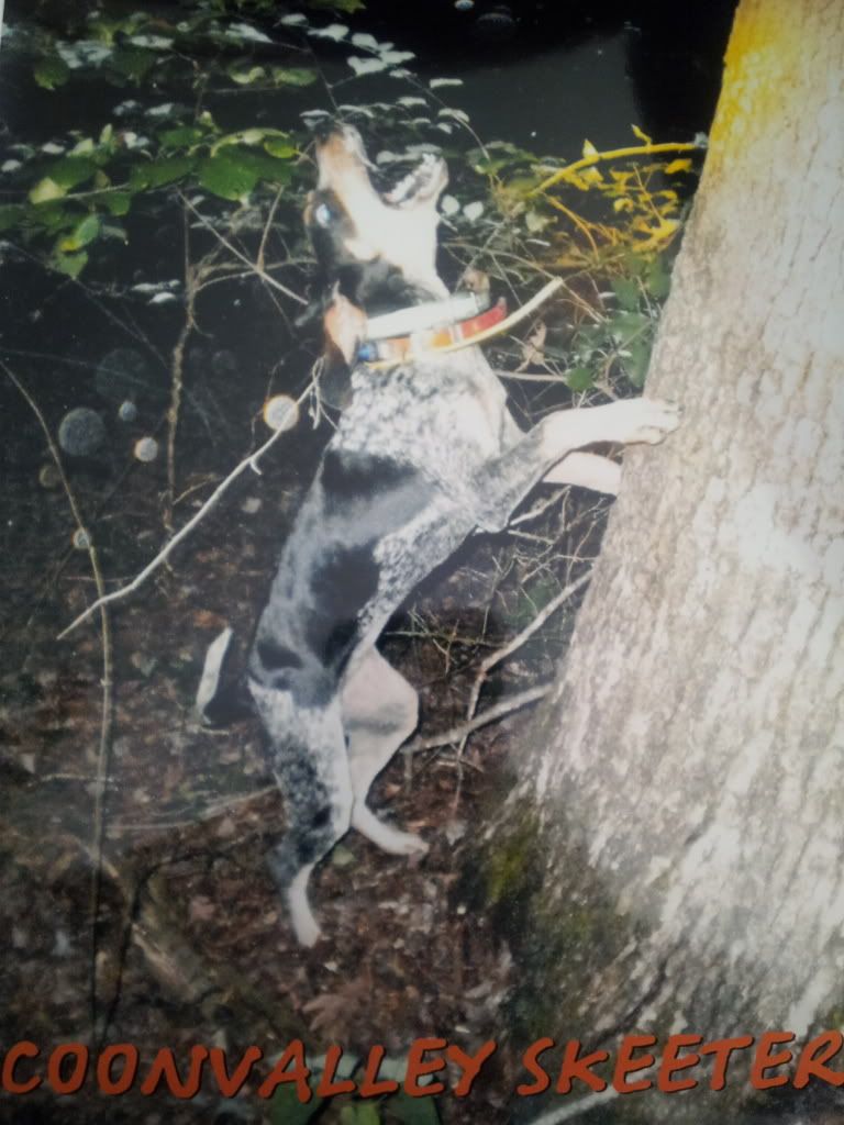 Skeeter looked good lastnight treed two singles all by herself.The second coon, she worked that track 989 yards and had the meat.Two for Two not bad for 5 months old!