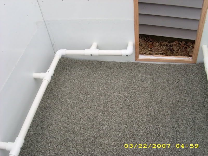And yes, the PVC is to keep the pups from getting smushed. I made it PVC instead of wood cause last time I had a litter, the female shredded the wood some to make her nest. That made a mess, plus, the entire inside is waterproof, so I can sanitize everything.