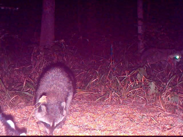I kinda thought it looked like two mating coons also but its a little early, but possible... And I have been getting alot of pics showing them growling at one another, so could be a little scuffle!!