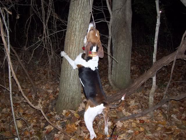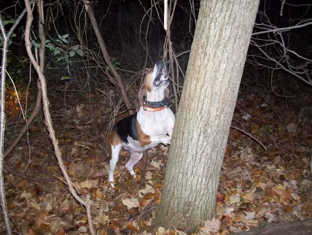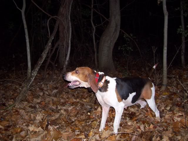 We only used the one hound, this is Natalie and she is whats known over here as a Treeing Walker Hound. She's registered and when I came here last April, her and her owner won the State championship, so she's pretty good.