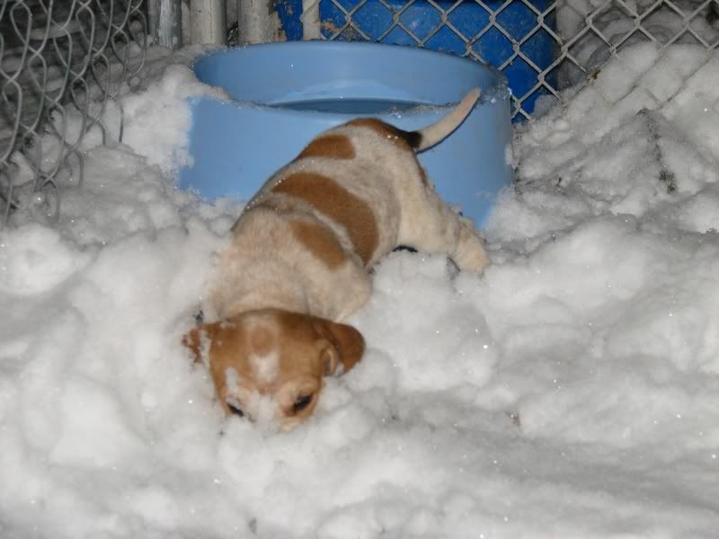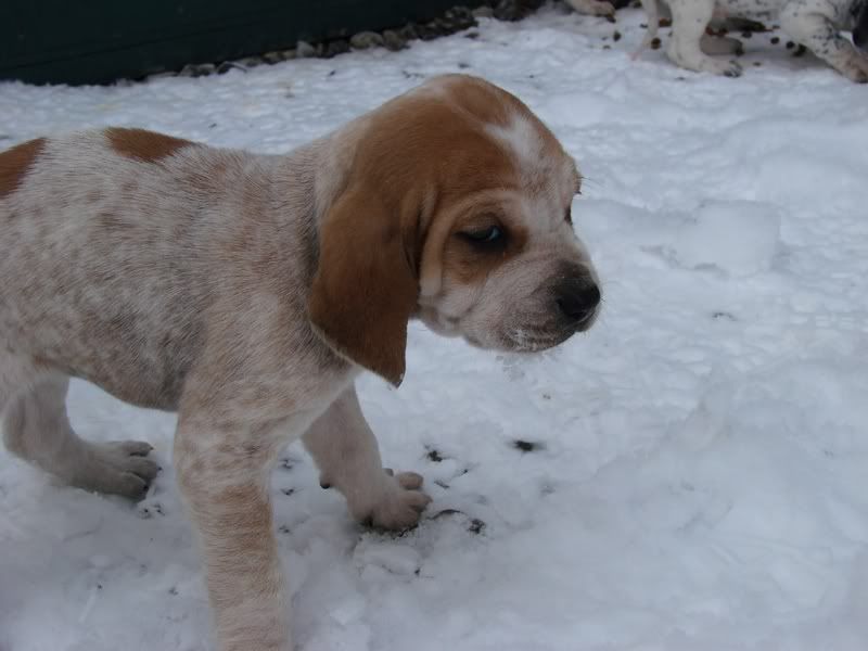 Looks like my bluetick in winter....other than the fact I HATE winter I do love to look at snow and LOVE to see Wyatt face down in the snow tracking some critter.