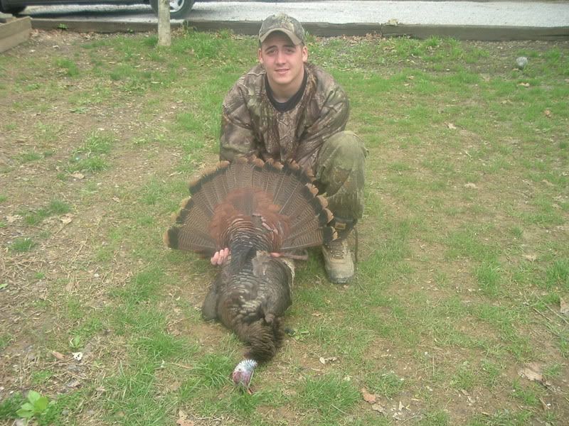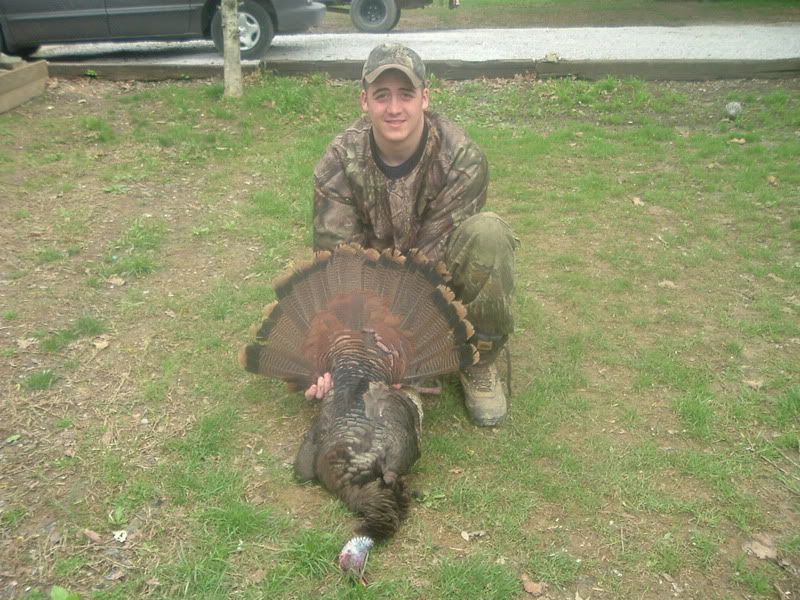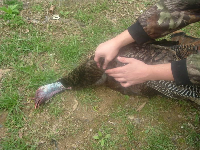 this mourning was opening mourning of turkey season, and only hunted for about 4min. he got about an 3 1/2 in. beard not all that big and not biggest one i shot, but its only my fourth one ever so and first turkey i have ever called up my dad normally does but he had to work so i had to go by myself. heres some pics.