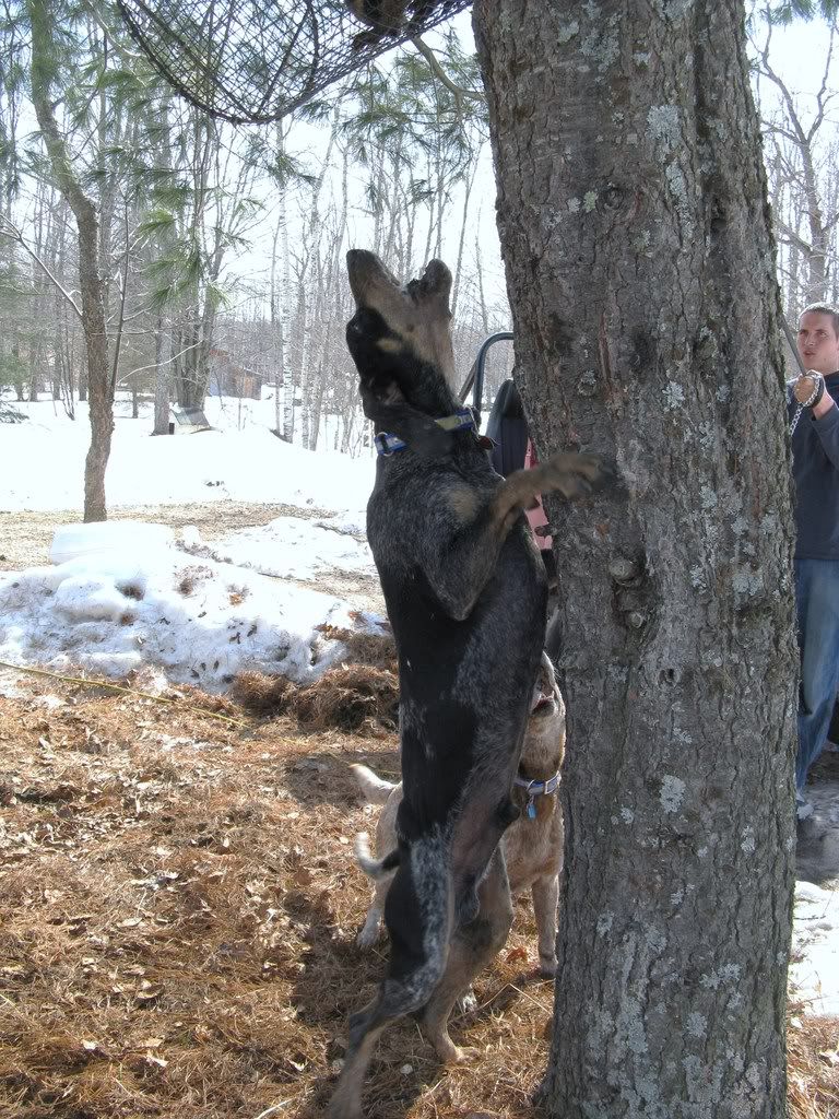 Thanks Larry, he's comming along really well. He's gone from barely leaving our sides to opening on track and treeing a little. Boy does he have a nice mouth on him! You won't have to worry about him not getting time in the woods up here! If Betty ends up turning out, we're thinking about breeding Fear and Betty somewhere down the line.