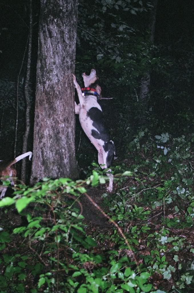 TOOK RINGO AND SASSY TONIGHT. SASSY STRUCK FIRST AS USUALL AND THEN RINGO OPENED AND FLAT TOOK THE TRACK AWAY FROM HER AND GOT FIRST TREE. THEY WERE PRETTY DEEP AND ALL I COULD HERE WAS RINGO TILL I GOT ABOUT A HUNDRED YARDS FROM THEM.