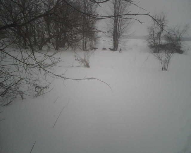 Not a great pic as it was snowing and I had to use my cell phone. They don't back down from anything.