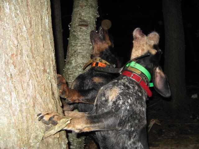 I run my blues on yotes all winter long as our coon are dened up. My female is a better coon dog than yote dog but has a yodel you can hear for miles. Here is a pic of one they have bayed up.
