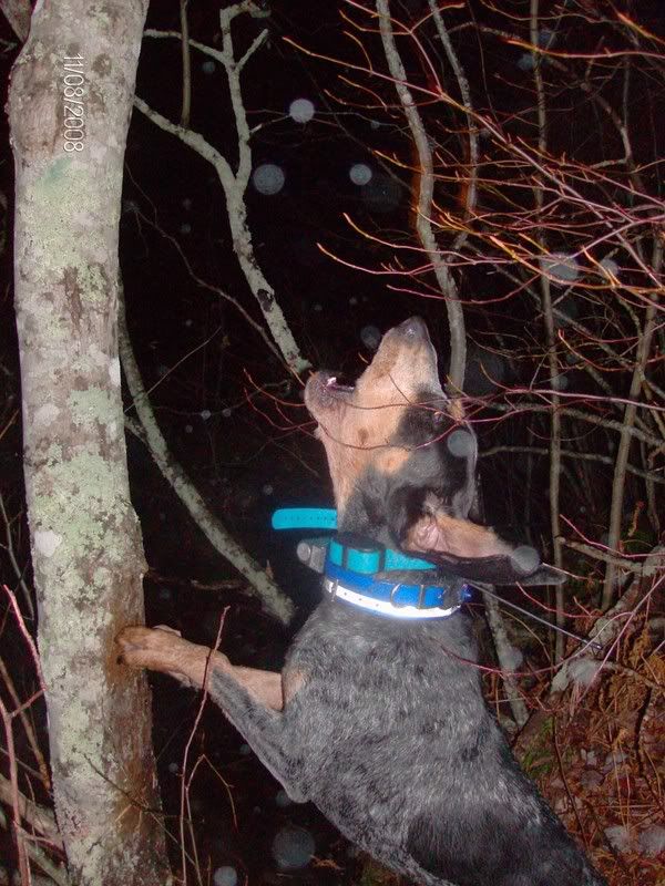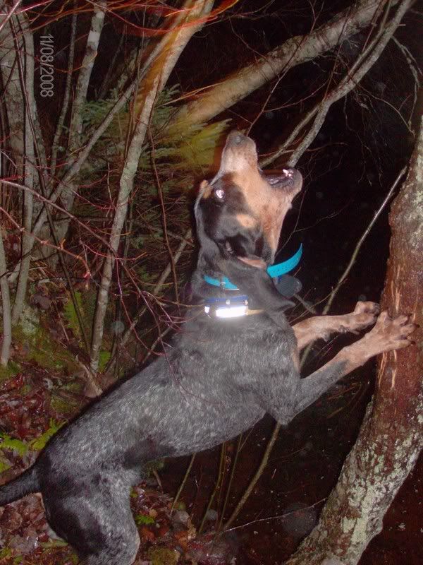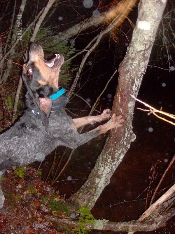 Was out tuesday nite, we made 2 drops with Posh first. First drop with Posh she got struck really cold ended up catching her. Next drop she treed 2. The third drop we droped Skye by herself and treed a coon. Last 2 drops we droped both dogs and treed 2 coons.