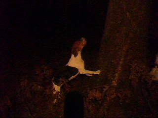 The other pic is of her treed with my Old Chester dog, Chester is the one in mid air. He jumps a bit at the tree.